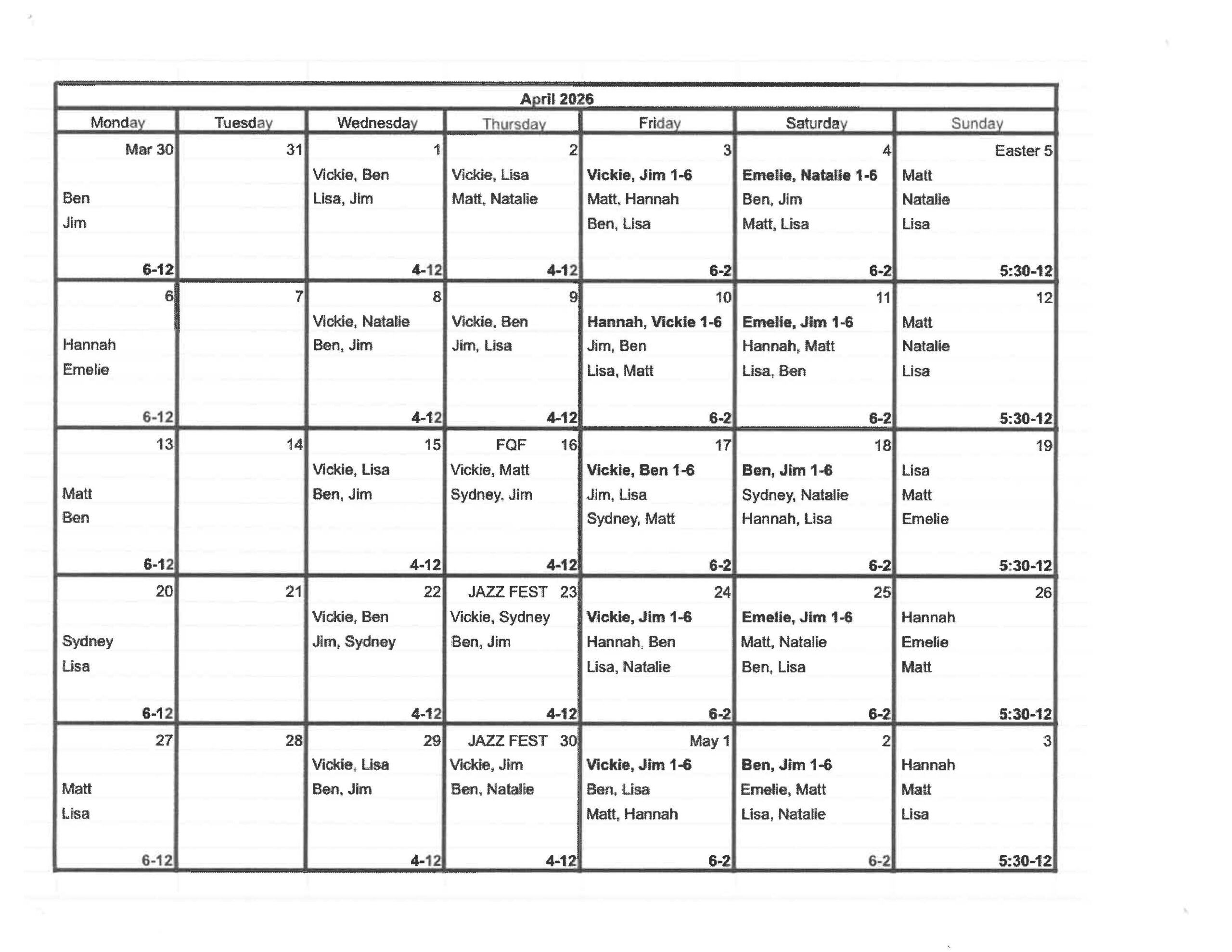 Wednesday, Thursday & Sunday: NOON – MIDNIGHT. Friday & Saturday: NOON – 2AM. Monday: 4PM – MIDNIGHT. Tuesday: CLOSED.