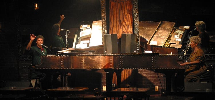 “Dueling pianos” concept evolved from the late 1890’s RAGTIME era, where two pianists would “duel” for the crowds attention and tips. Although there were two pianists at the original location, the new location provided much more space to accommodate two baby grand pianos. They tweaked the ragtime format to encourage audience participation by way of song requests. The show quickly became a favorite of locals, especially a few newspaper writers. Word spread across the country and propelled the bar’s already familiar name. Through the years a variety of performers have graced the stage…singers, horn players and, of course, tray tapping, but always with the accompaniment of talented entertainers at the copper topped pianos.
